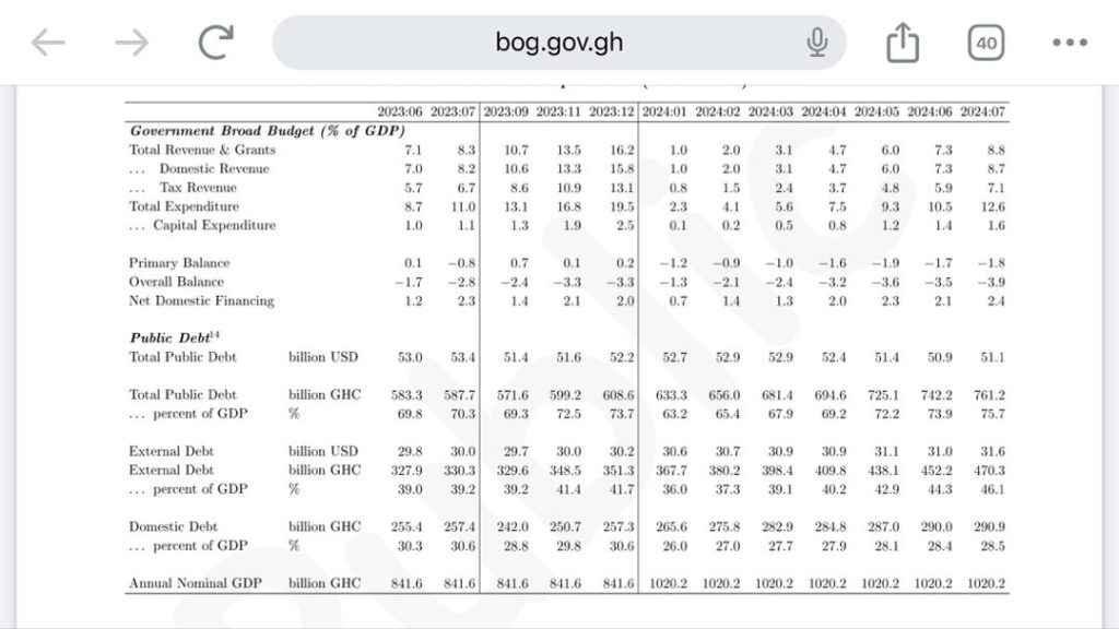 Also, as of July 31, 2024, the country’s total public debt was GHȼ761.2 billion, equivalent to $51.1 billion, according to Bank of Ghana’s Summary of Economic and Financial Data published in Sept.
