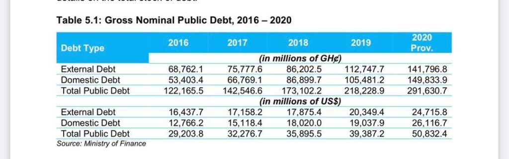 This conclusion is backed by the Annual Public Debt Report for the 2020 Financial Year submitted to Ghana’s Parliament on Mar. 29, 2021, which revealed that the country’s public debt in 2016 was GHȼ122.2 billion, equivalent to