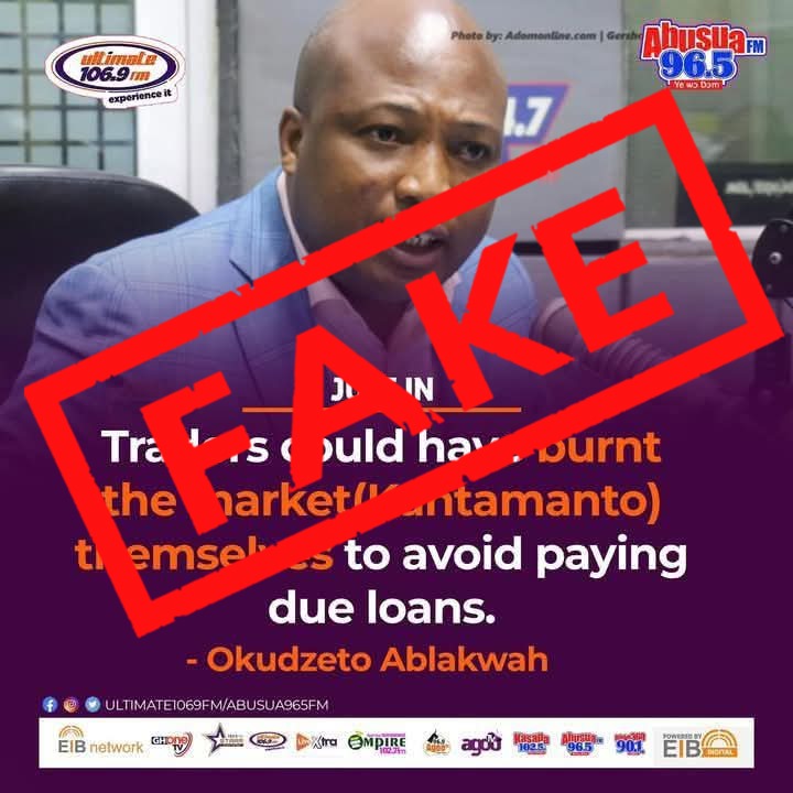 A viral fact card alleged lawmaker Samuel Okudzeto Ablakwa had blamed the traders at Kantamanto, a popular second-hand clothes market in Accra, for the fire that destroyed their shops.